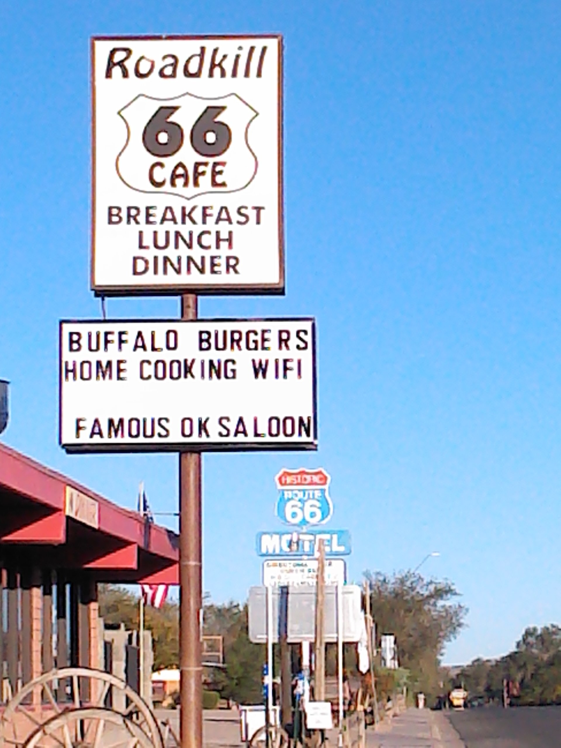 We were still on route 40, a major highway, in AZ when we got a flat. A cop stopped to make sure we were ok and to provide some protection from cars. He asked a few questions about our ride and was totally impressed.
