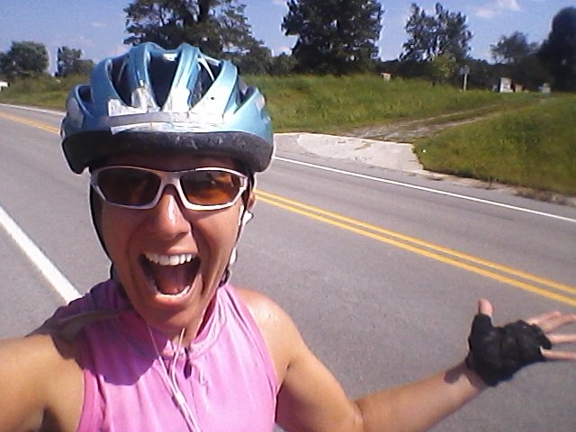 There was a road closure at a bridge. We decided that there was just no way of getting around it without our bikes drowning in mud and water. So we backtracked and took a gravel road for about a three mile detour loop. I fell, some blood, definitely sweat, but no tears…I hate gravel!