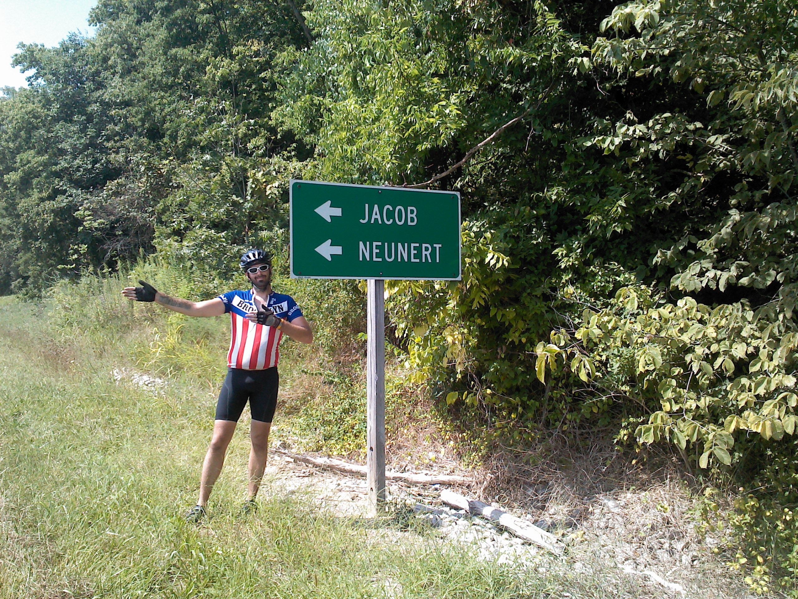 Later on down the road, around mile 80, Jacob thought “man I could use a cold drink”. Then we see an SUV pull over ahead of us, take two ice cold bottles of water out his back seat cooler and flag us down. Gary lives in Kansas City and was helping his brother install a new roof on his home in Fair Grove MO over the weekend. He told us about a competitive cyclist who also grew up in Fair Grove and competed with the old Jelly Belly team. Nice, generous guy.